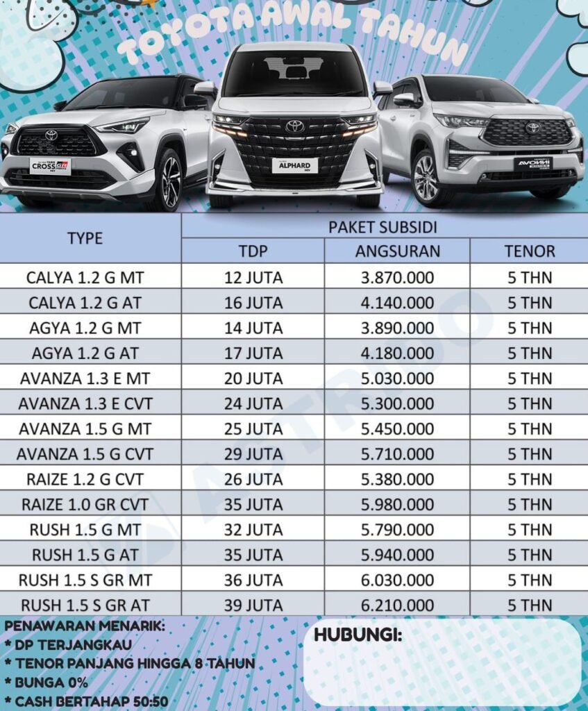 dan masih banyak lagi promo terbaik Toyota lainnya.