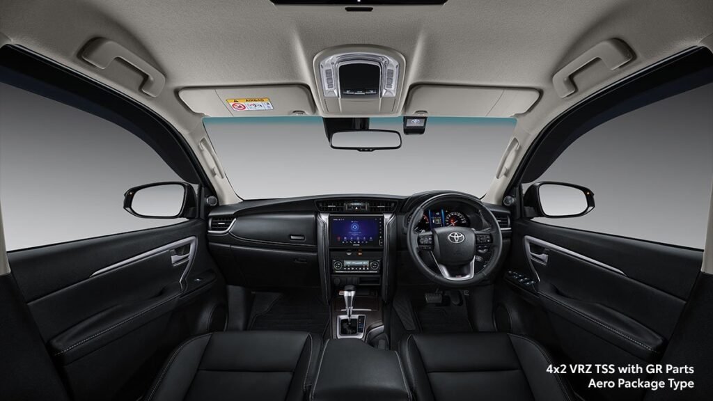 Call it graceful, call it rugged, call it greatness. The New Fortuner 4×2 stands out with its black appearance and the GR Aero Package, leaving a sporty mark. It boasts a commanding style and bold presence on city roads.